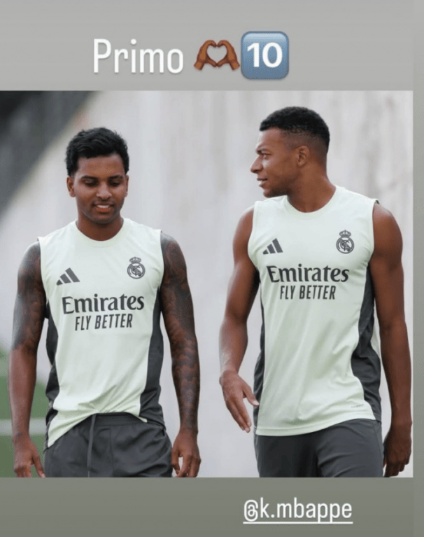 但是现在看来皇马巨星罗德里戈也是展现出来了自己的态度,在社交媒体上他也是公开示好了姆巴佩。这次皇马前锋罗德里戈更新社媒动态,晒出与姆巴佩的合照,配文“兄弟”。这条动态随后被姆巴佩本人转发,迅速登上热搜。这一举动不仅展现了两人之间的亲密关系,也让大家看到了他愿意臣服姆巴佩,接受现在成为球队辅助角色的问题了。